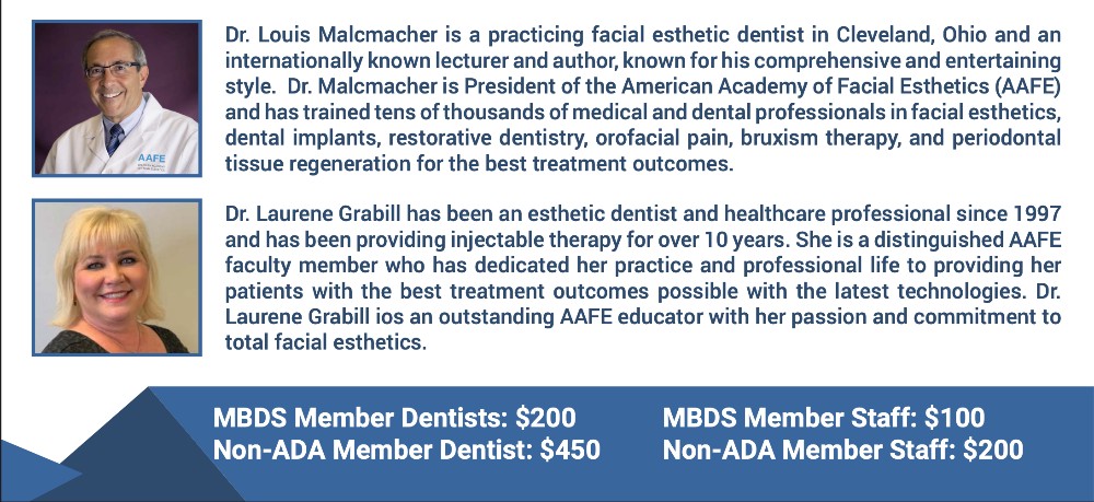 Join the over 22,000 AAFE trained dentists and offer your patients Botox and dermal fillers, the most popular elective esthetic and therapeutic patient services in the world! Dentists will see high definition video of advanced Botox and dermal fillers treatments for next generation esthetic and therapeutic uses including dental and facial esthetics, gummy smiles, lip enhancements, midface volumization for proper lip / smile lines, eliminate bruxism, relieve TMJ, trigger point therapy and more!